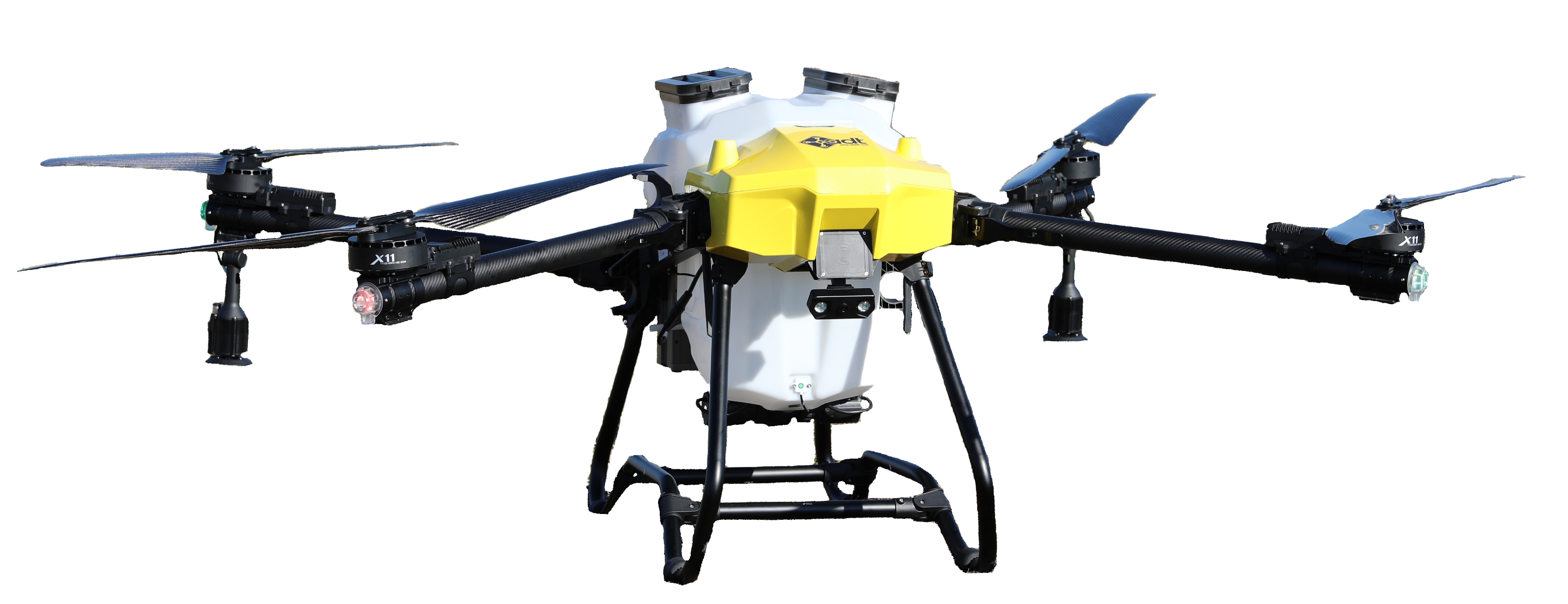 ADT Aquila S 20L- 4M is an agricultural quadcopter designed to increase efficiency and crop management in plant protection and fertilization. It can carry 20L of liquid, covering 1.5 hectares in a single flight.